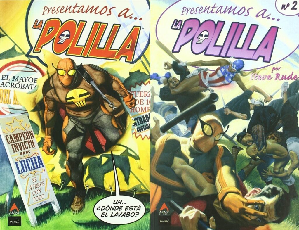 Rebuscando entre los saldos de tiendas de cómics, vi un tomo con el cual ya me había cruzado tiempo atrás, “La Polilla” de Steve Rude, un tomo publicado por Azake ediciones, el cual superó sin problemas mi rápido análisis (número de páginas, precio, temática y ver si en la última viñeta ponía “FIN”).