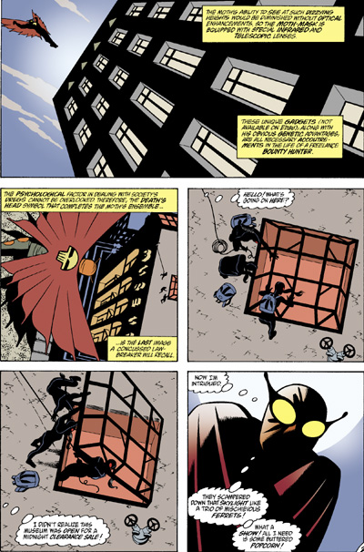 Tras eso, veremos una breve historia de La Polilla en la cual es contratado por un mafioso local, al cual engaña para sacar el máximo beneficio (algo relativamente habitual en este particular superhéroe).