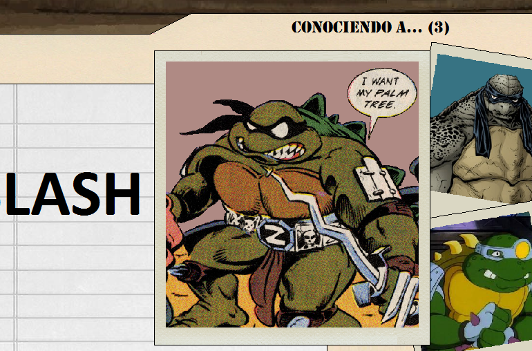 Slash es una enorme tortuga mutante con predilección por las palmeras. Su enorme tamaño y agresivo carácter provocarán que las Tortugas Ninja le tengan que parar los pies en más de una ocasión